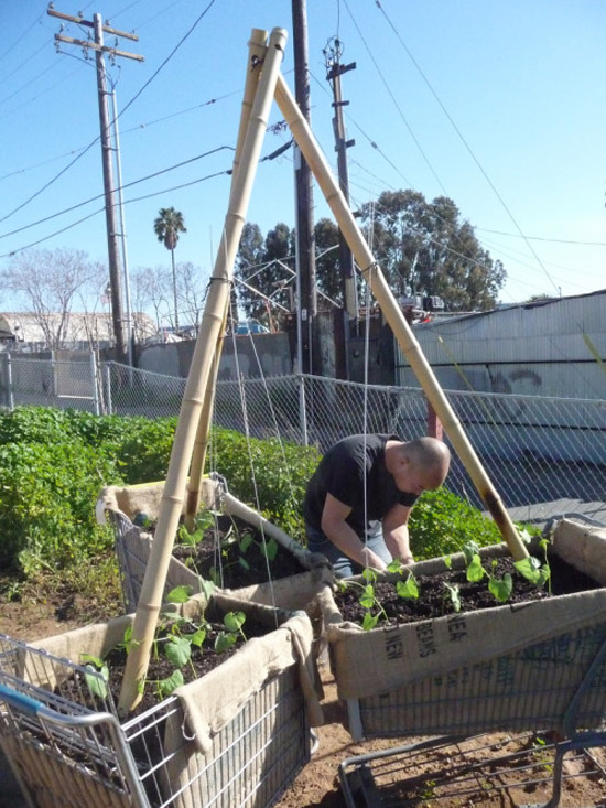 Τα τοποθετήσαμε πάνω σε ξύλινες παλέτες που βρήκαμε στον δρόμο (η Αθήνα είναι γεμάτη ξύλινες παλέτες), τα στρώσαμε με μαύρες σακούλες σκουπιδιών και τα γεμίσαμε χαλίκι (που επίσης βρήκαμε τοποθετημένο σε αμέτρητες σακούλες στο πεζοδρόμιο μιας πολυκατοικίας της γειτονιάς) και χώμα - μίγμα για φύτευση οπωροκηπευτικών – το οποίο αγοράσαμε στο φυτώριο της περιοχής μας.